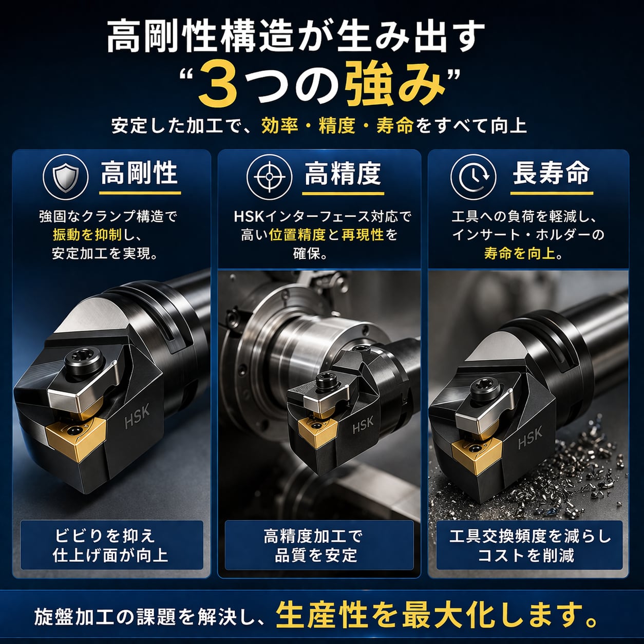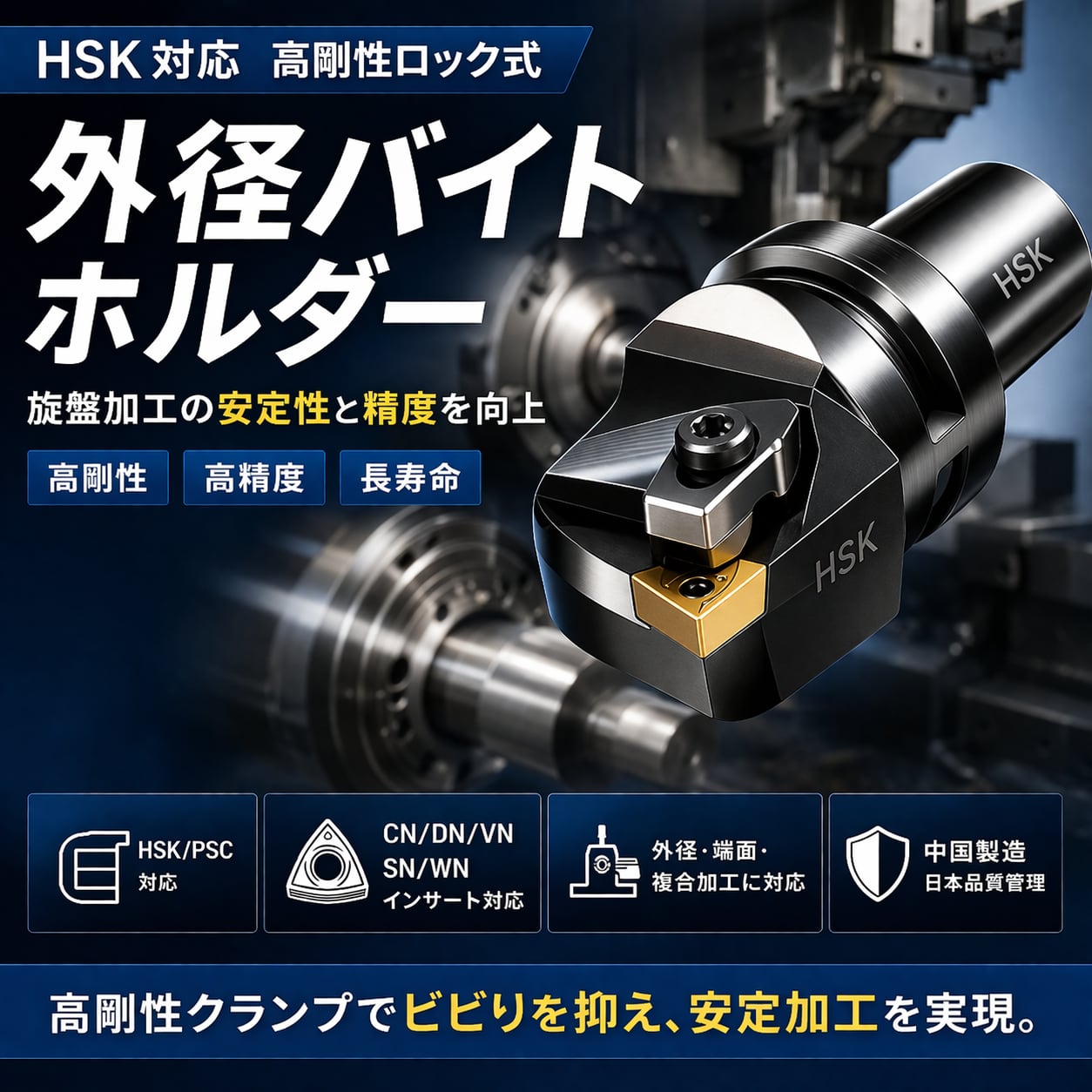 本製品は、HSK対応の高剛性外径バイトホルダーです。